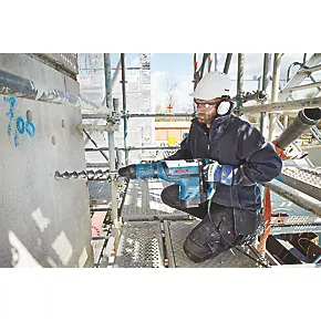 Professional heavy duty SDS max corded rotary hammer. Features robust metal components and vibration control with a powerful motor delivering 19J of impact energy, perfect for tough chiselling. Supplied with carry case.