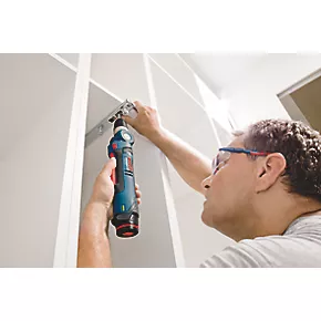 Extremely versatile, compact, angled drill driver. Features a 5-position head with keyless chuck. Electronic motor brake allows precise work when driving rows of screws. Includes a practical battery charge level indicator with 3 LEDs. Bosch ECP (Electronic Cell Protection) helps to protect the battery from overload, overheating and deep discharge. Ideal for driving screws and drilling holes in narrow, tricky locations.