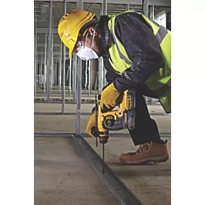This DeWalt DCH253N-XJ cordless SDS Plus drill has excellent vibration control of 6.6m/s² and a cordless, soft-grip design that make it comfortable for long periods of use. The LED light enables you to use the tool in darker areas and tight corners, and the 18V Li-ion battery improves overall performance and maintenance, and maximises run time. The drill’s rotation stop mode is suited for light chiselling in plaster, tiles and render and its impact stop mode is ideal for rotary only drilling into wood and metal. The multi-position side handle and lightweight design make it easy to handle.