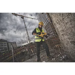 Brushless motor and high capacity XR FlexVolt batteries with charge indicators for longer runtime and reduced maintenance. Anti-rotation system detects a loss of control and reacts by instantly cutting the power. Compact, lightweight and ergonomic design for improved comfort and support during extended operation. Bright white LED with delay feature to improve visibility. Supplied with heavy duty kit box.
