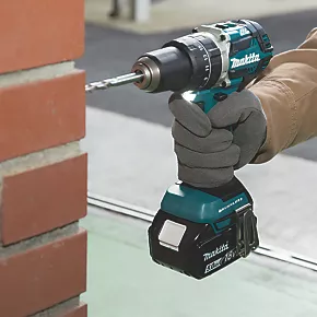 Compact combi drill with Makita brushless motor, delivering more run time and less maintenance than a standard brushed motor. Features ergonomic slim grip that provides comfortable grip with reduced fatigue. Includes twin LED work lights with pre-glow and afterglow for improved illumination of the workpiece. Protected against both water and dust ingress when used in harsh weather conditions.