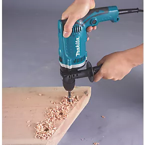 The Makita HP1631K/2 percussion drill is suitable for a full range of applications. With 240V and a no load speed of up to 3200rpm, this Makita tool is powerful enough to drill through wood, steel, masonry, brick and block. It also weighs just 2kg and features a plush soft-grip handle, making it easy and comfortable to use. A carry case means that the tool is also easy to transport and there is also a side handle which allows for extra stability during use.