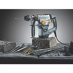 An intensely powerful motor and a wide range of bundled accessories makes this Titan TTB631SDS SDS Plus drill one of the most versatile tools of its kind. Included in the kit are 22 drill bits, including 14 6-20mm masonry bits, five TiN-coated bits, and three chisels: pointed, flat and U-shaped. All these are driven by a 1500W motor which generates 8J of impact energy. Despite its powerful output, the tool’s anti-vibration system means that you can still use it in comfort.